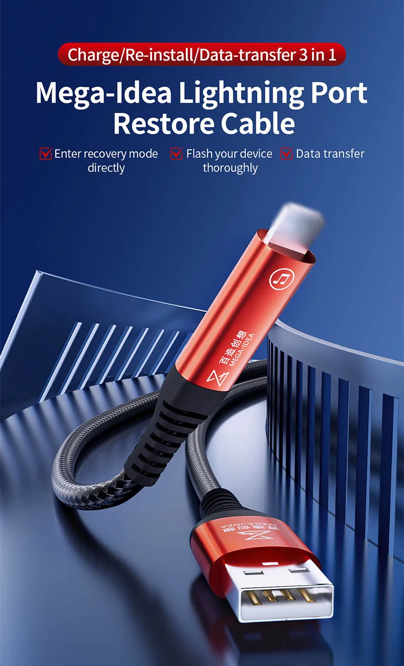 3 in 1 Lightning Port Restore Cable for Mobile Phone Pad Pod QIANLI MGEA-IDEA Charge/Re-install/Data-transfer Line