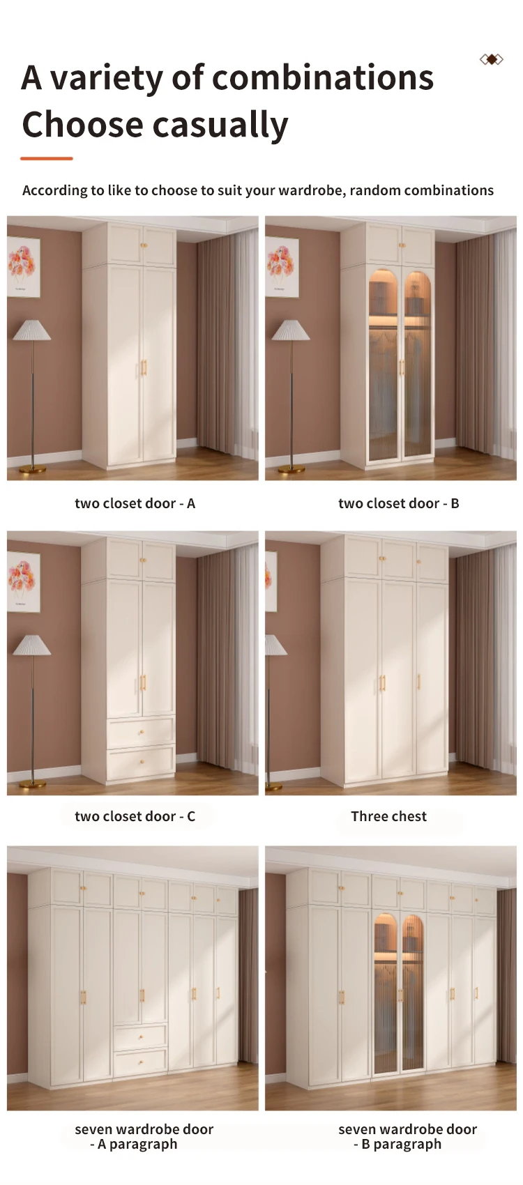 a. A variety of combinations, suitable for large and small houses.