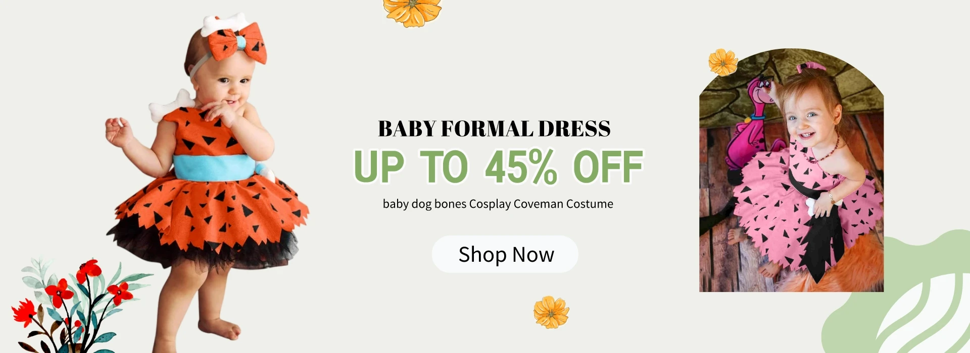 Prowow Caveman Costume For Baby Dresses Orange Off Shoulder Dog Bones Party Dresses For Girls Performance Dress Kids Costume