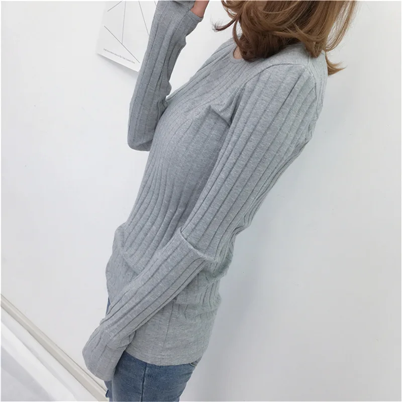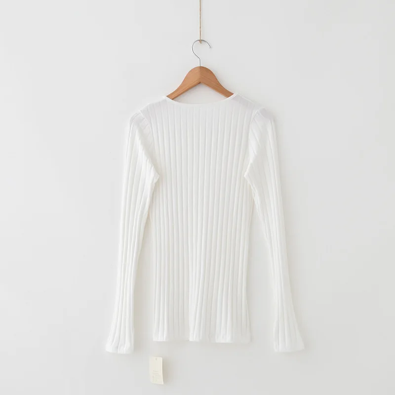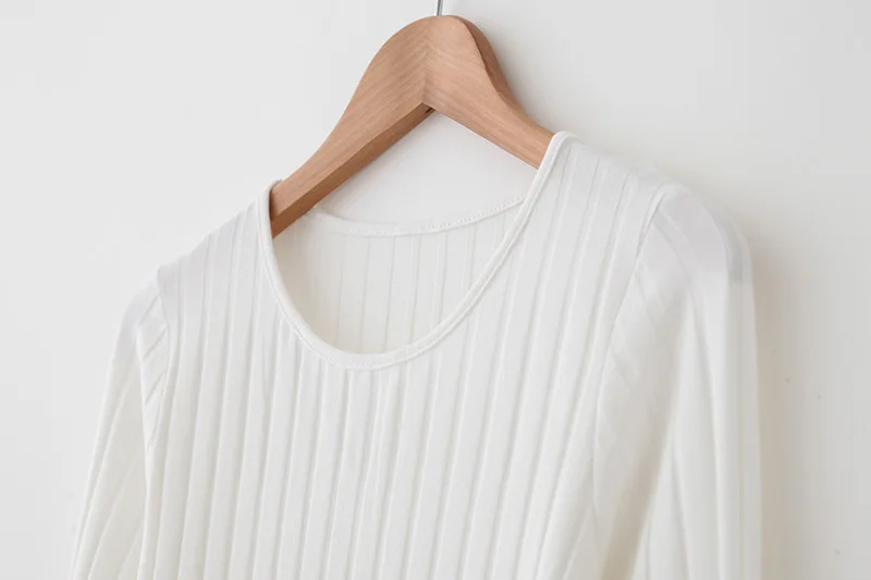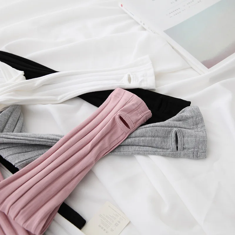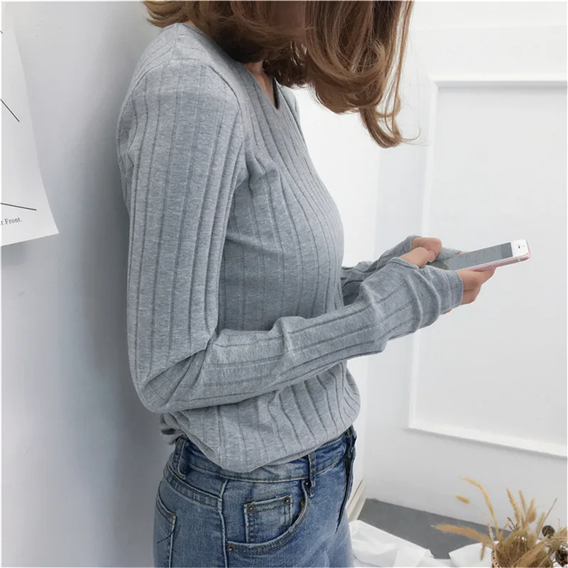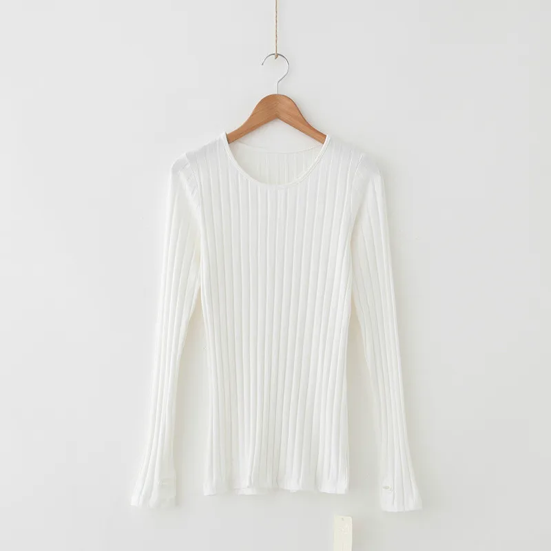 Basic cozy and soft cotton ribbed top with thumb hole, crew neck, slim fitted