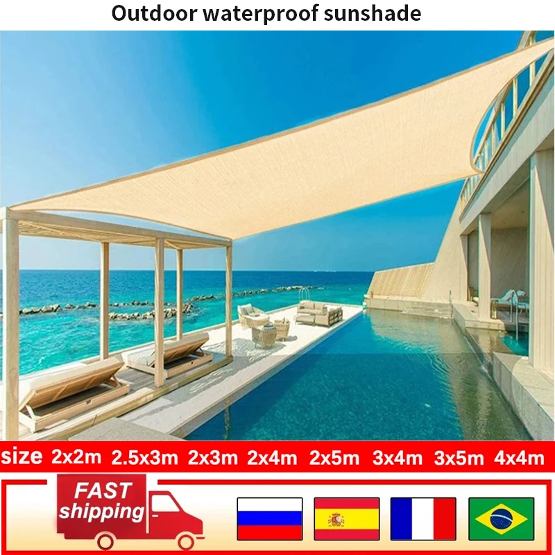 Outdoor waterproof sunshade awning sunshade tent camping hiking sunshade canvas garden sunshade sail grey beige3x5m 3x6m 4x5m