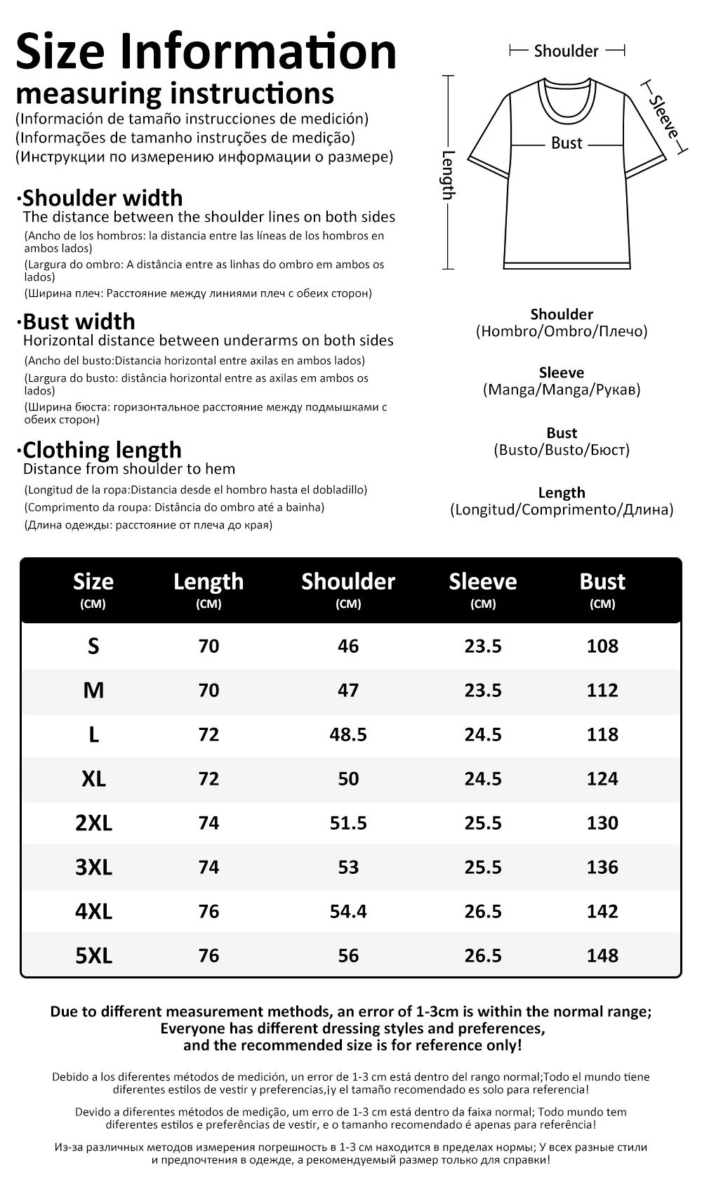 Size S, M, L, XL, 2XL, 3XL, 4XL, 5XL