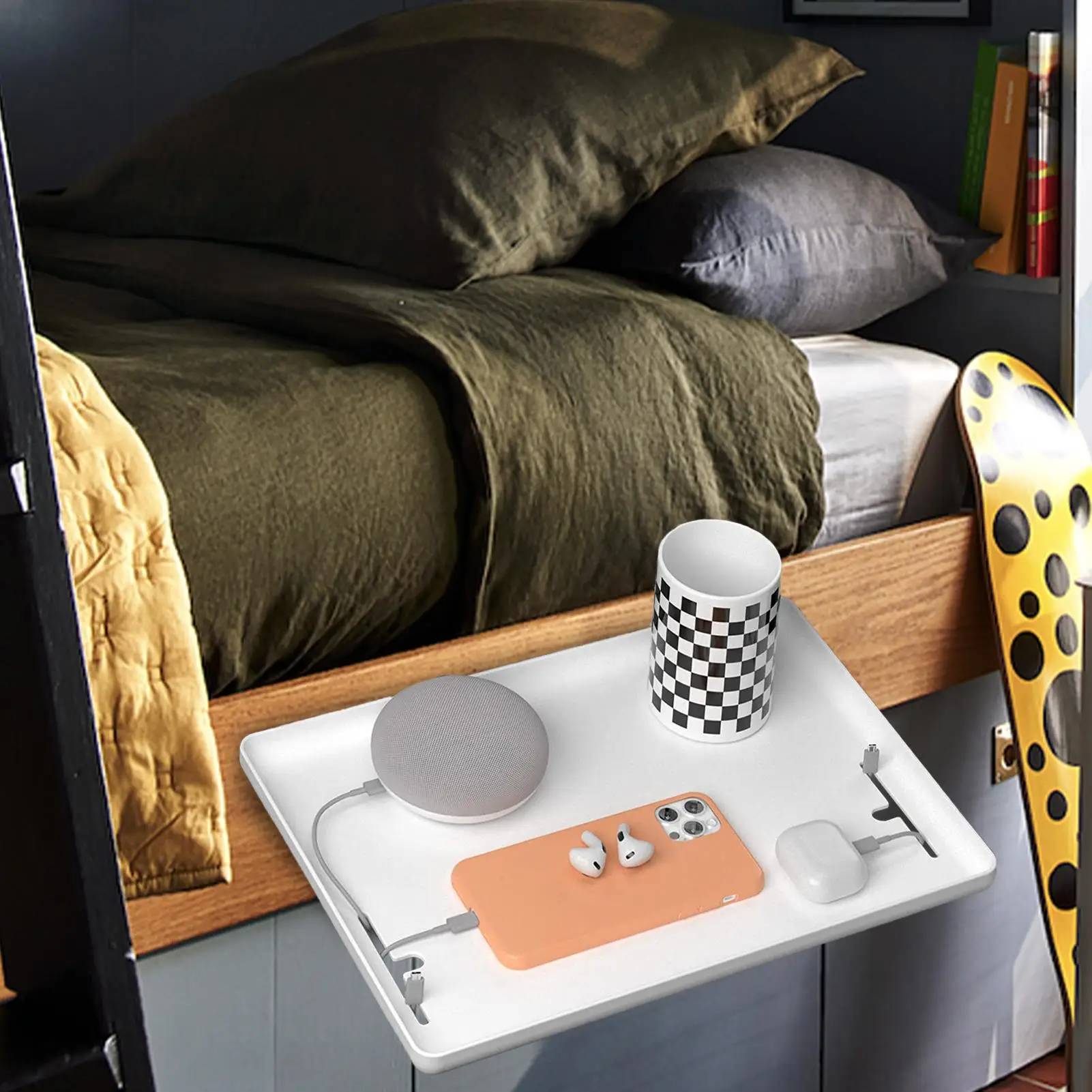Bedside Shelf for Bed Bedside Storage Tray for Bedroom Accessories Detachable Organizer Shelf for Cell Phone Magazine Books Toys