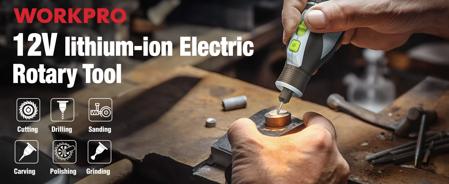 WORKPRO 12V Engraving Electric Rotary Tool EU Plug Multifuctional Variable Speed Polishing Cordless Rotary Tool 114 Accessories