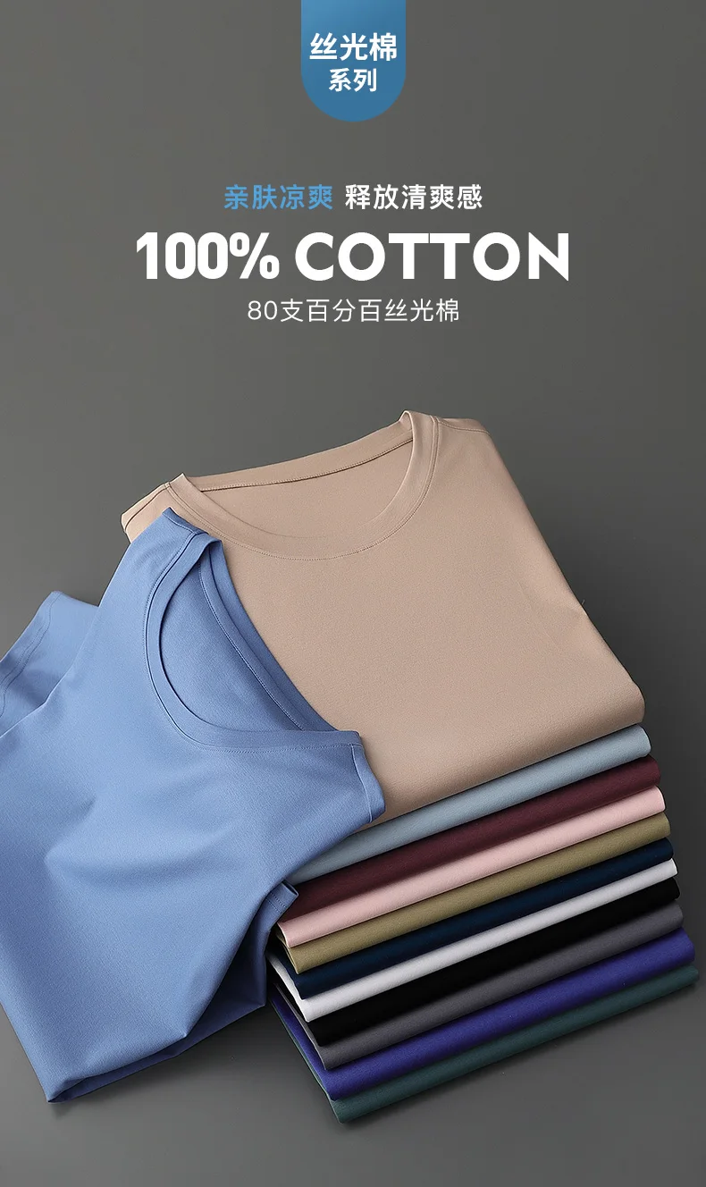 MVLYFLRT 100% Pure Cotton T-Shirt Men's Round Neck Pullover Vest Casual Loose Solid Color Short Sleeved Summer New T-Shirt